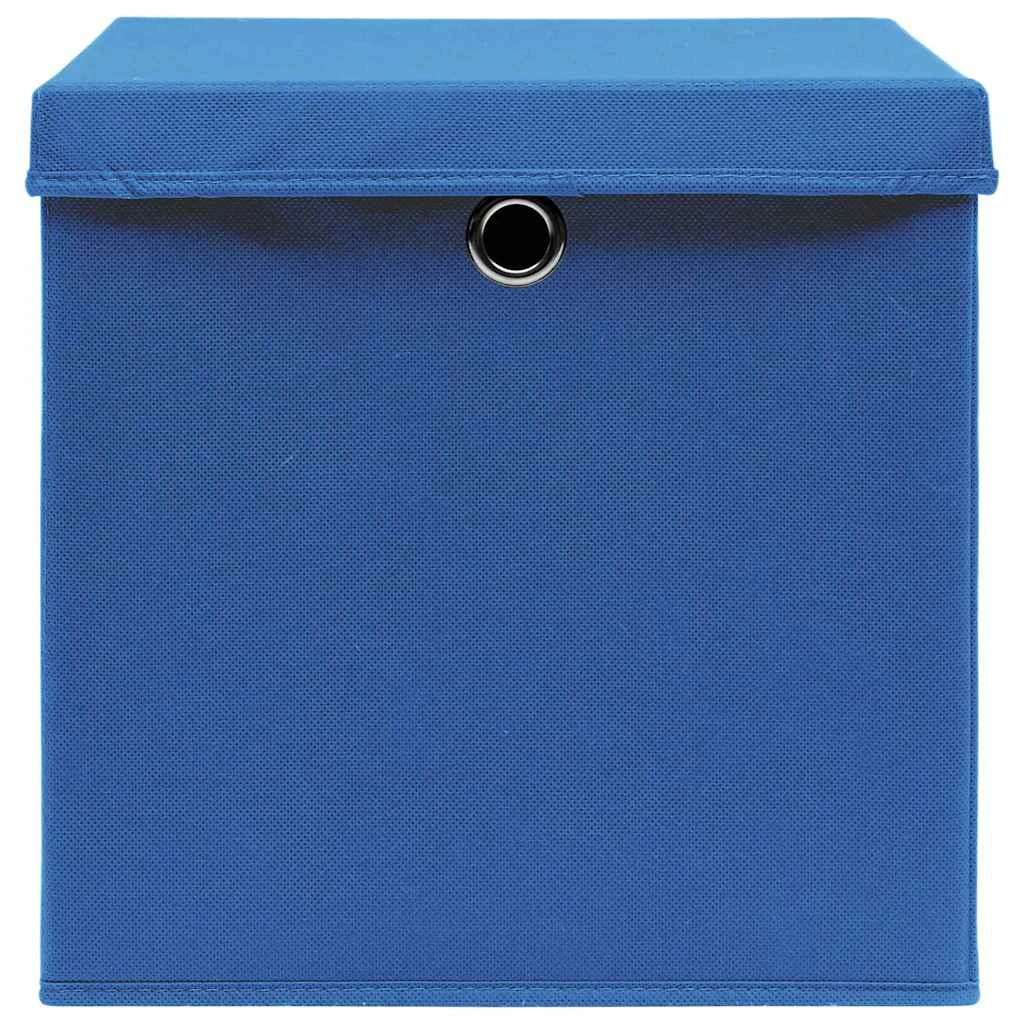 vidaXL Daiktadėžės su dangčiais, 10vnt., mėlynos, 32x32x32cm, audinys