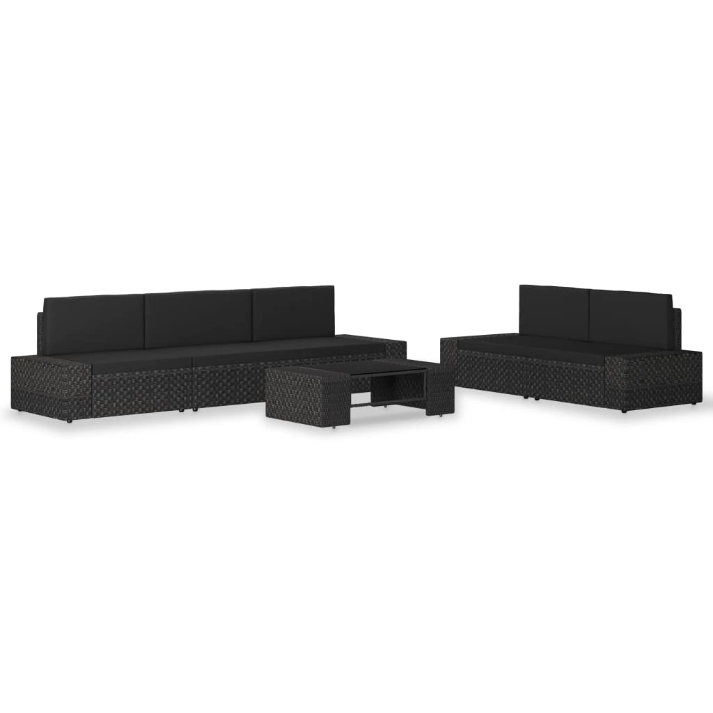 vidaXL Sofos komplektas su pagalvėlėmis, 7 dalių, juodas, poliratanas