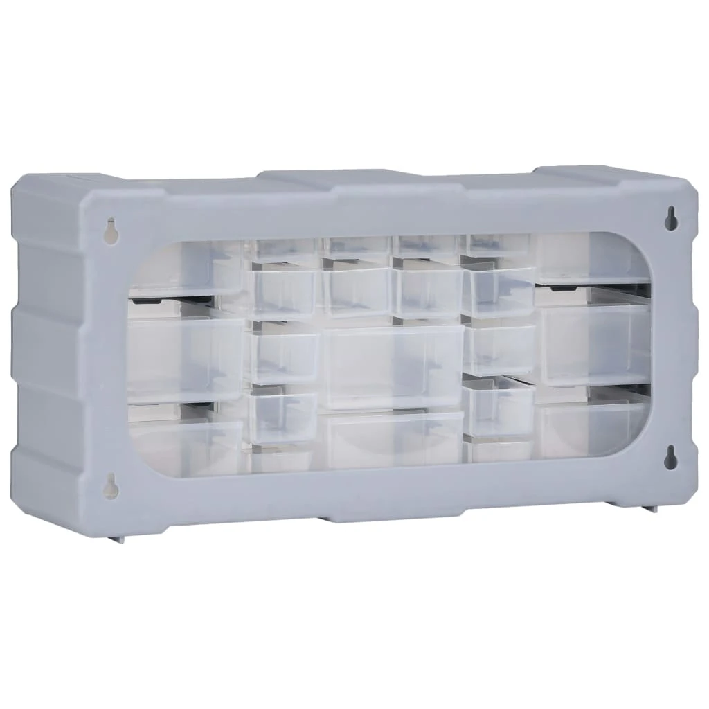 Siekiant užtikrinti, kad jis atitiks jūsų poreikius, šis stelažas susideda iš 14 mažų ir 8 vidutinių stalčių. Juose galėsite tvarkingai bei lengvai pasiekiamus laikyti savo rankinius įrankius ir tokius priedus, kaip tvirtinimo detalės. Spintelė įrankiams yra pagaminta iš smūgiams atsparaus plastiko, kuris yra tiek patvarus, tiek stabilus. Stalčiai yra pagaminti iš permatomo plastiko, tad galėsite greitai nustatyti, kas juose yra. Įrankių dėžė puikiai tinka veržlėms, varžtams, sraigtams, vinims, bendroms tvirtinimo detalėms ir sudedamosioms dalims laikyti.