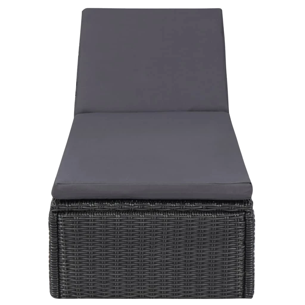 vidaXL Saulės gultas, juodos ir tamsiai pilkos spalvos, poliratanas