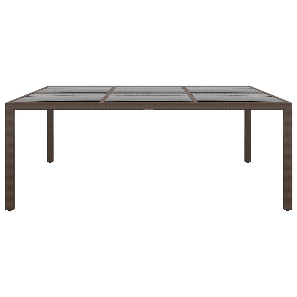 vidaXL Stalas su stikliniu stalviršiu, rudas, 200x150x75cm, ratanas