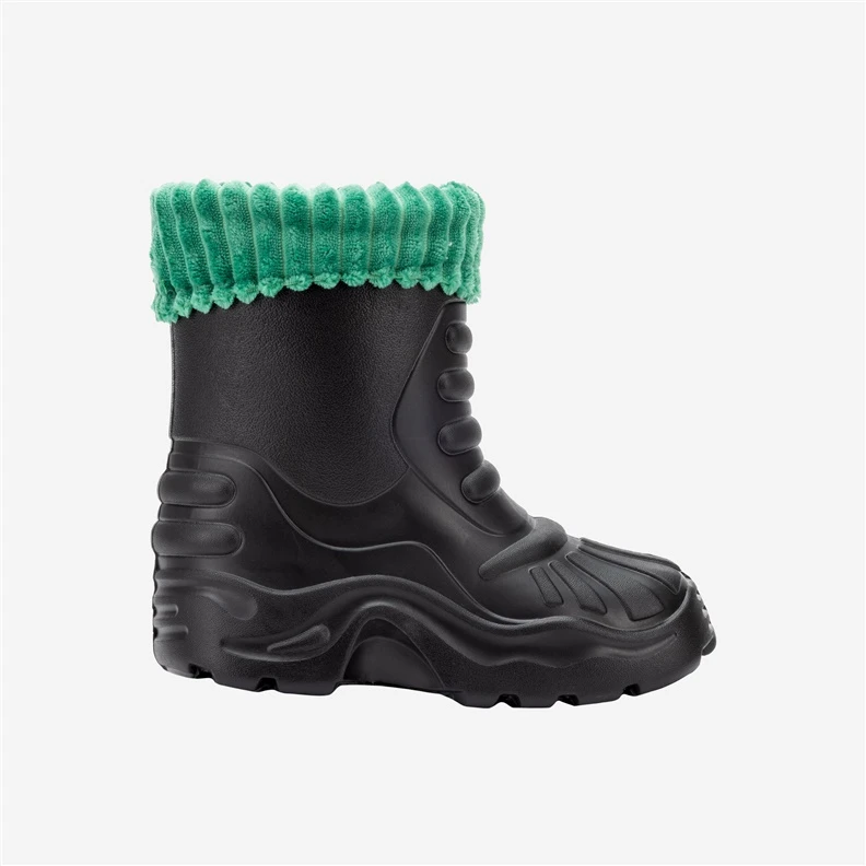 Prekės ženklas- Okko. Spalva- Juoda. Žalia. Medžiaga- Guma. Batų dydis- 34 - 35. Batai su aulu- Taip. Su pašiltinimu- Taip. Atsparumas vandeniui- Taip.