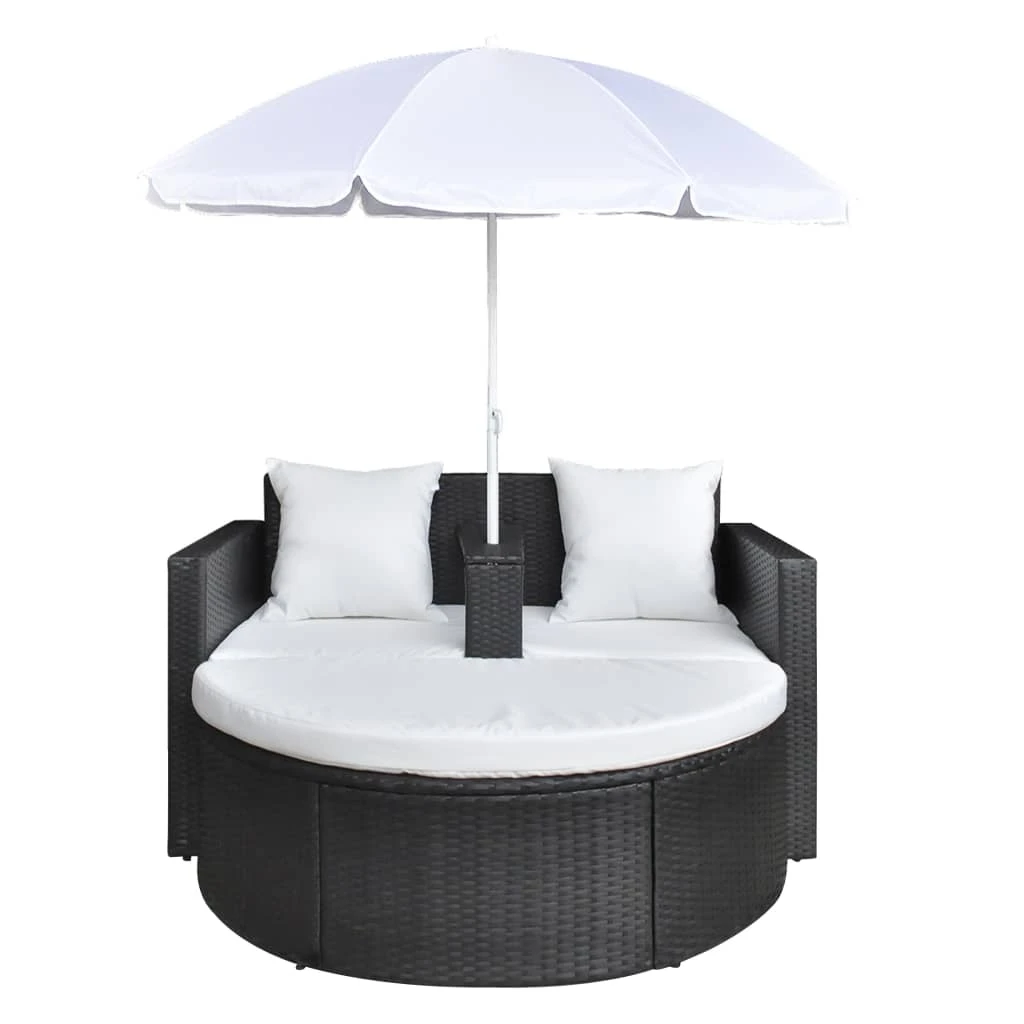 vidaXL Sodo gultas su skėčiu, juodas, poliratanas