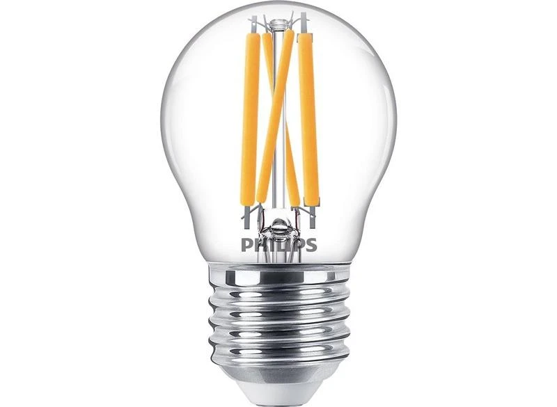 Prekės tipas- Lemputės. Artikulas- 929003013201. Prekės ženklas- Philips. Lemputės tipas- LED. Ilgis- 45 - 45mm. Plotis- 45 - 45mm. Aukštis- 78 - 78mm. Įtampa- 220 - 240V. Cokolis- E27. Šviesos srautas- 470 - 470lm. Lemputės forma- Apvali/burbuliukas. Šviesos spalva- Šiltai balta. Spalvos temperatūra- 2200 - 2700°K. Paviršiaus/stiklo tipas- Skaidrus. Šviesos srauto reguliavimas- Taip. Lemputės formos žymėjimas- P45. Šviesos sklaidos kampas- 270 °. Spalvos perteikimo indeksas (CRI)- 80. Lemputės efektyvumas- 104 lm/W. Energinio efektyvumo klasė- D. Energijos sąnaudos. kWh/1000 h- 4. Vidutinė veikimo trukmė- 15000 h. Su reflektoriumi- Ne. Belaidis valdymas (Wi-Fi)- Ne. Su valdymo pulteliu- Ne. Galima nuotolinio valdymo funkcija- Ne. Papildoma informacija- Lygiavertė 40 W standartinei lemputei. Privaloma garantija- 24 mėn.