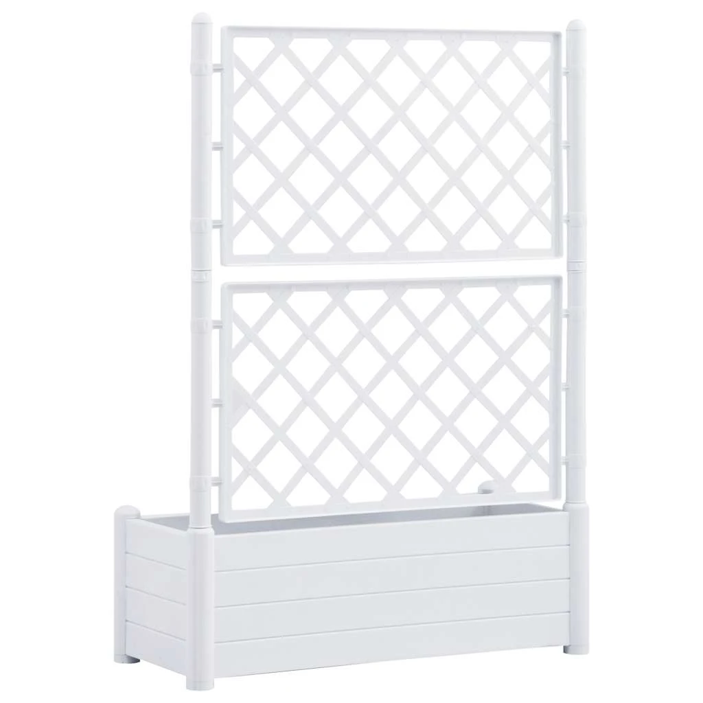 vidaXL Sodo lovelis su treliažu, baltos spalvos, 100x43x142cm, PP