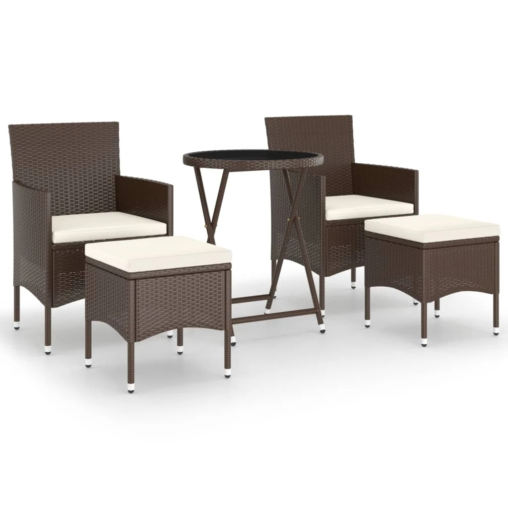 vidaXL Bistro baldų komplektas, 5 dalių, rudas, poliratanas-stiklas
