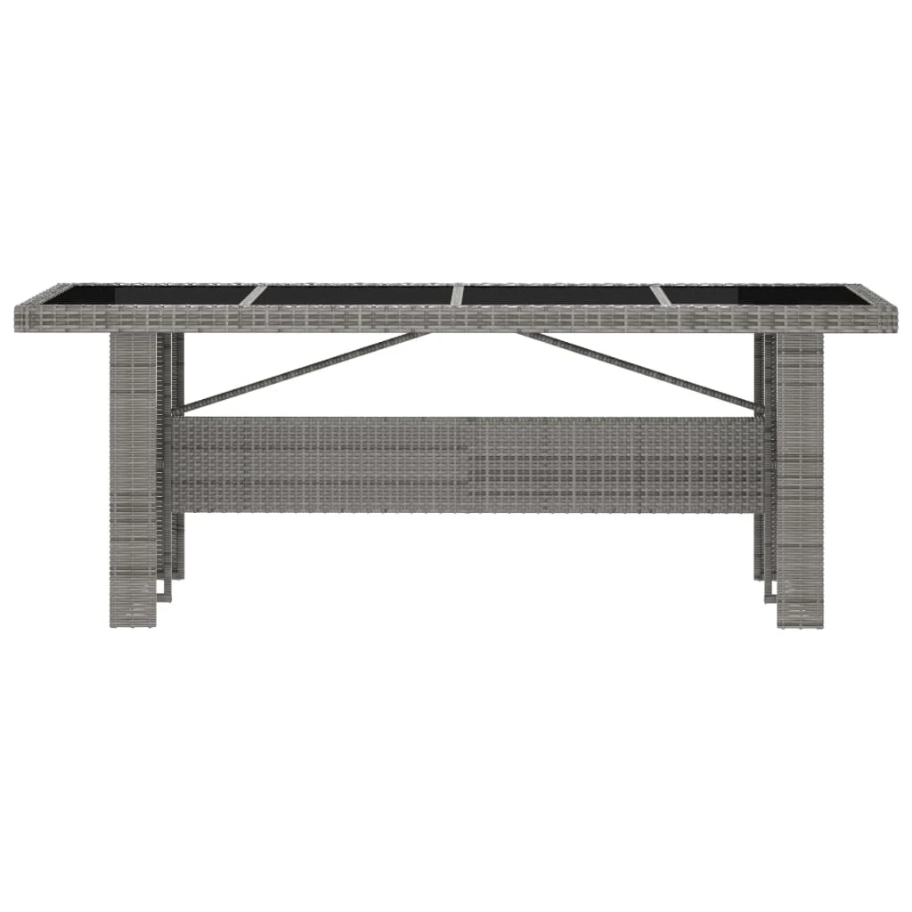 Šis sodo baldų komplektas pasižymi tvirtu, nepaprastai stabiliu ir patvariu milteliniu būdu dengto plieno rėmu. PE ratanas užtikrina, kad šis valgomojo baldų komplektas yra lengvai valomas, ilgaamžis ir tinkamas kasdieniam naudojimui lauke. Stiklinis stalviršis taip pat yra paprastai valomas drėgna šluoste. Atlošiamos kėdės suteikia didžiausio sėdėjimo komforto bei užtikrina puikią atramą. Šone esančio mygtuko pagalba galite paprastai sureguliuoti atlošą norima padėtimi. Be to, storos ir minkštos sėdynės bei nugaros pagalvėlės taip pat yra nepaprastai patogios.