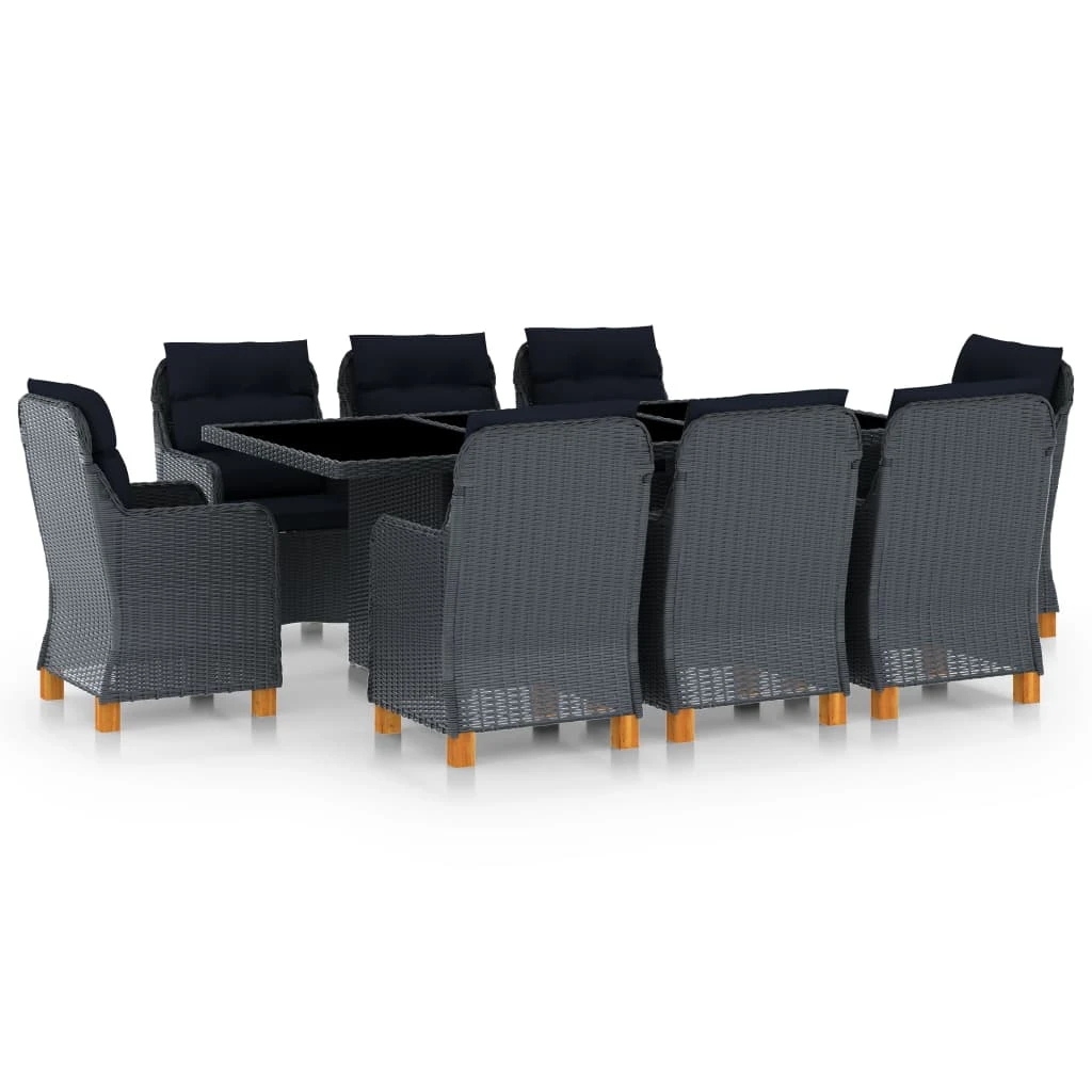 vidaXL Lauko komplektas su pagalvėmis, 9 dalių, pilkas, poliratanas