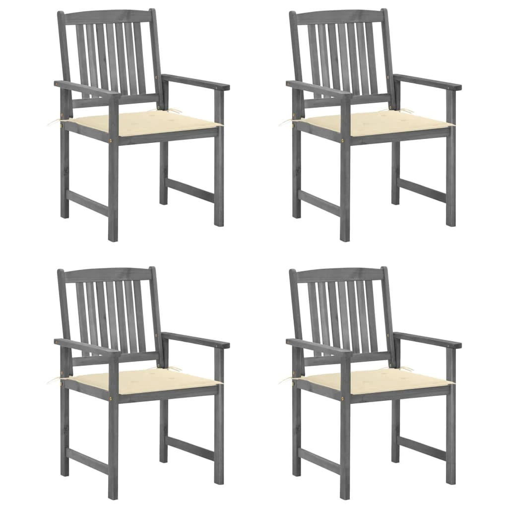 vidaXL Sodo kėdės su pagalvėlėmis, 4vnt., pilkos, akacijos masyvas