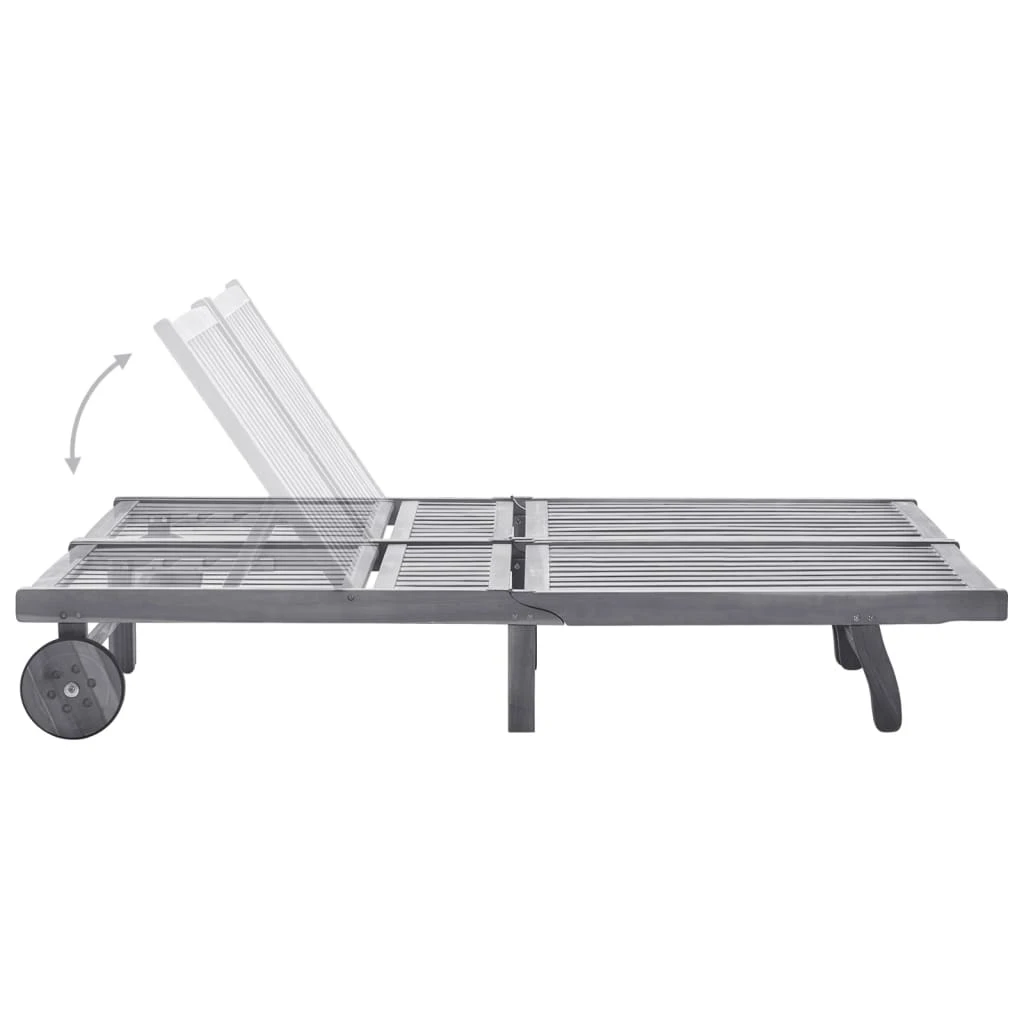 vidaXL Saulės gultas su stalu, pilkas, akacija ir tekstilenas