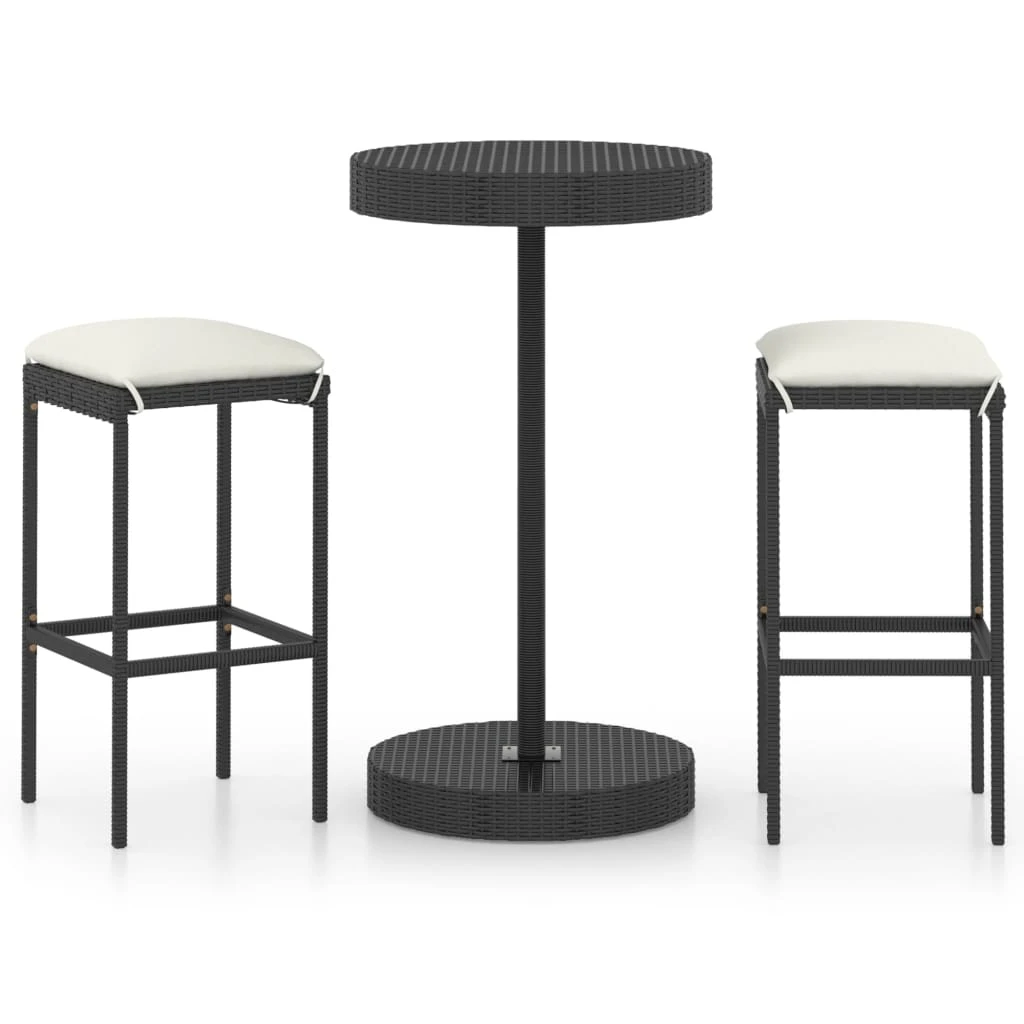 vidaXL Sodo komplektas su pagalvėlėmis, 3 dalių, juodas, poliratanas