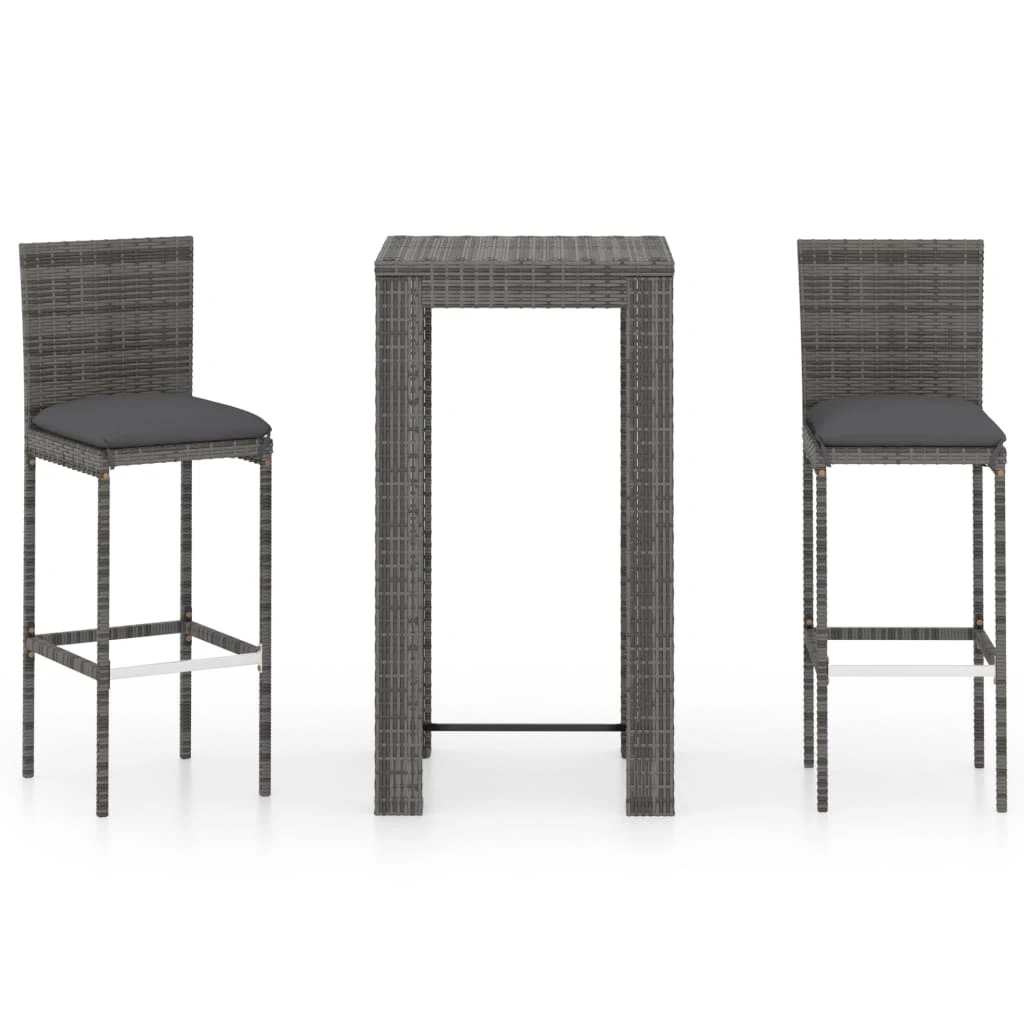 vidaXL Lauko komplektas su pagalvėlėmis, 3 dalių, pilkas, poliratanas