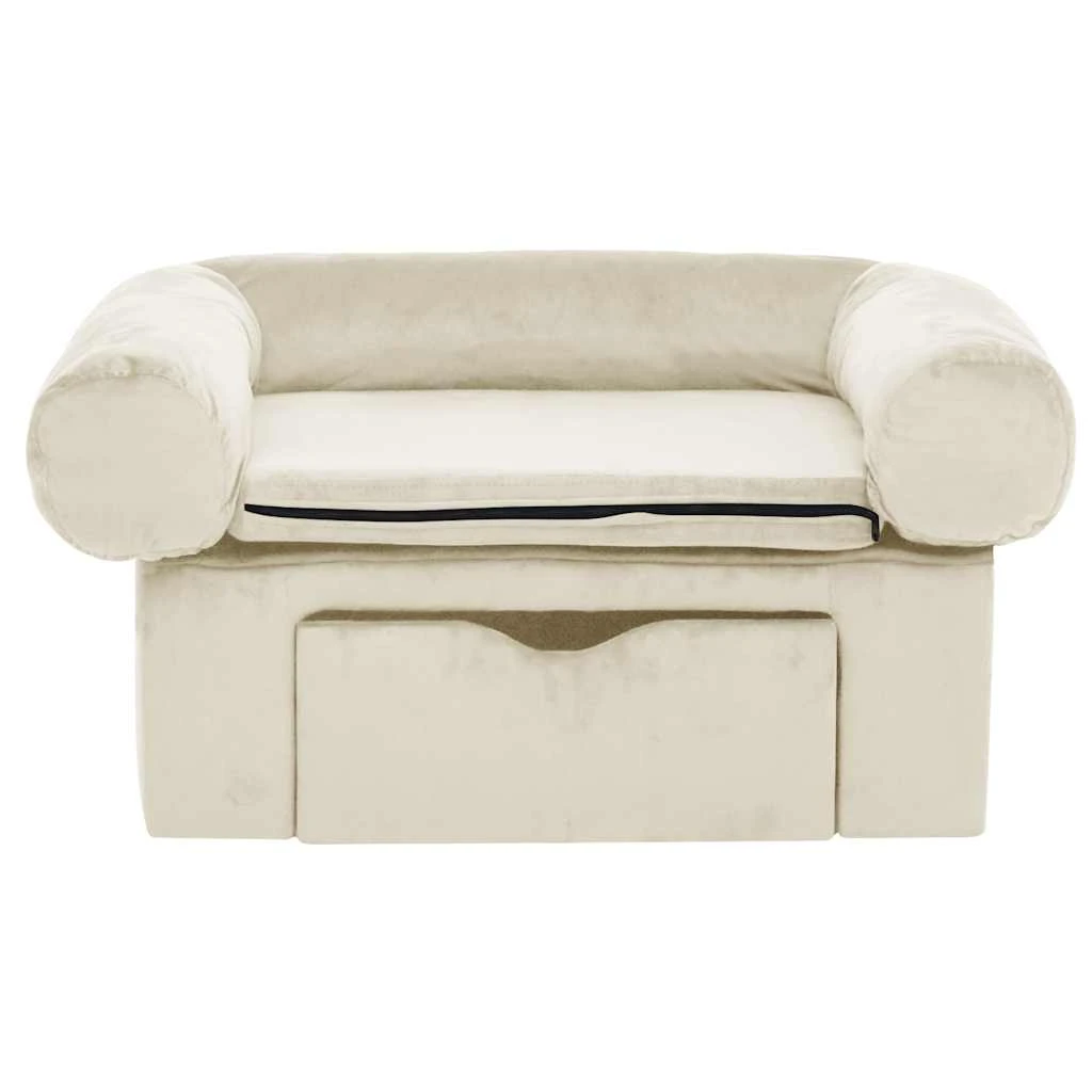 vidaXL Lova šunims su stalčiumi, kreminės spalvos, 75x50x38cm, pliušas