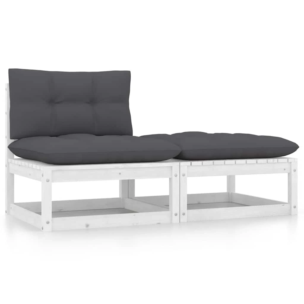 vidaXL Sodo poilsio komplektas su pagalvėlėmis, 2 dalių, baltas, pušis