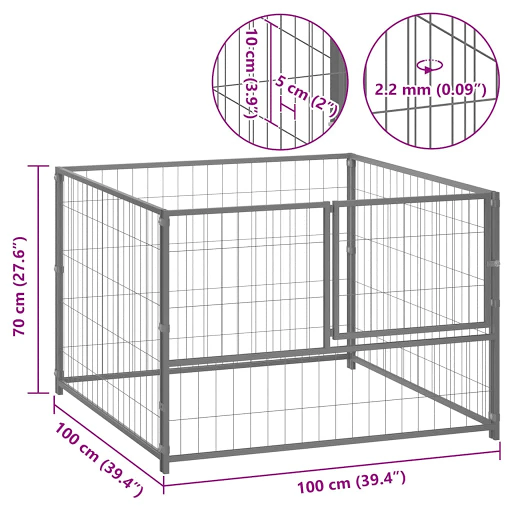 vidaXL Voljeras šunims, sidabrinės spalvos, 100x100x70cm, plienas