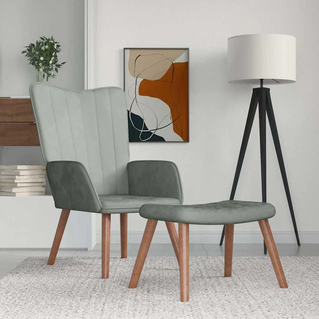 vidaXL Poilsio kėdė su pakoja, šviesiai pilkos spalvos, aksomas