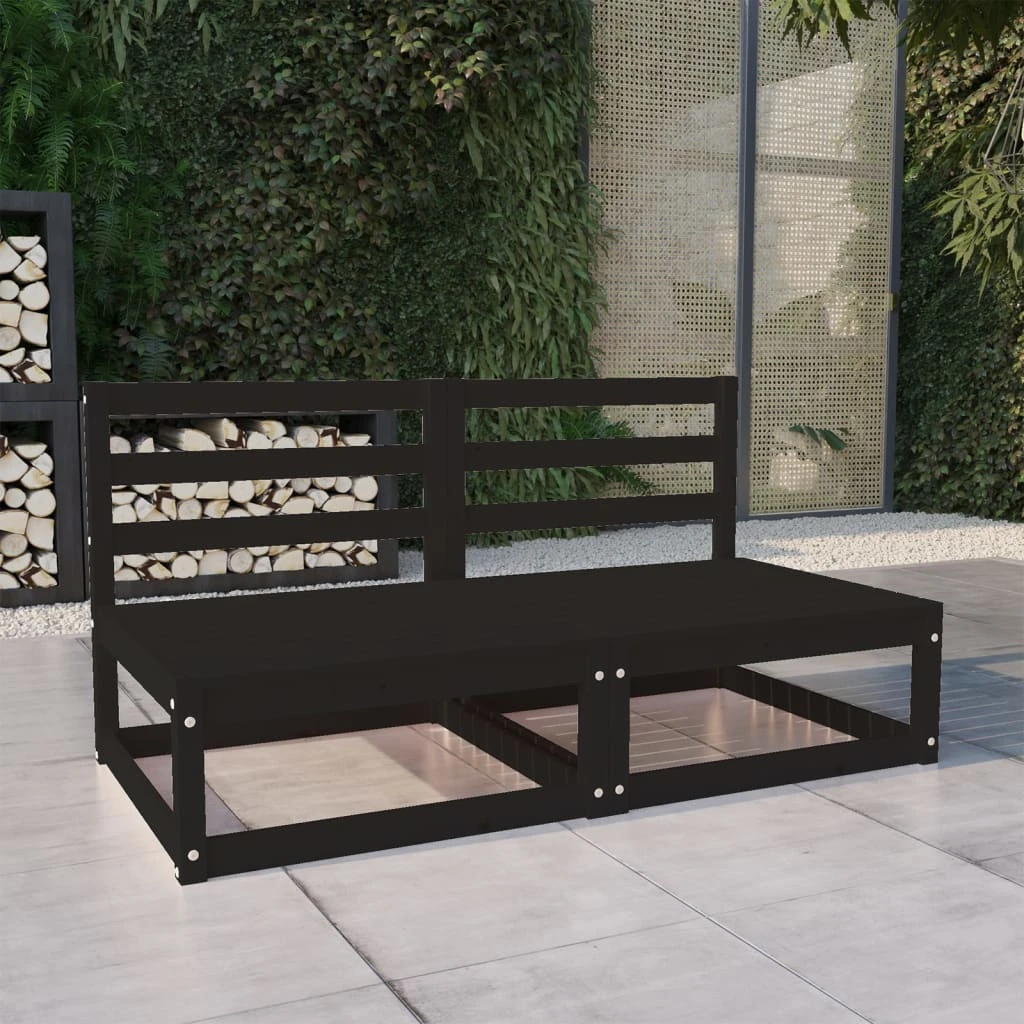 vidaXL Dvivietė sodo sofa, juodos spalvos, pušies medienos masyvas