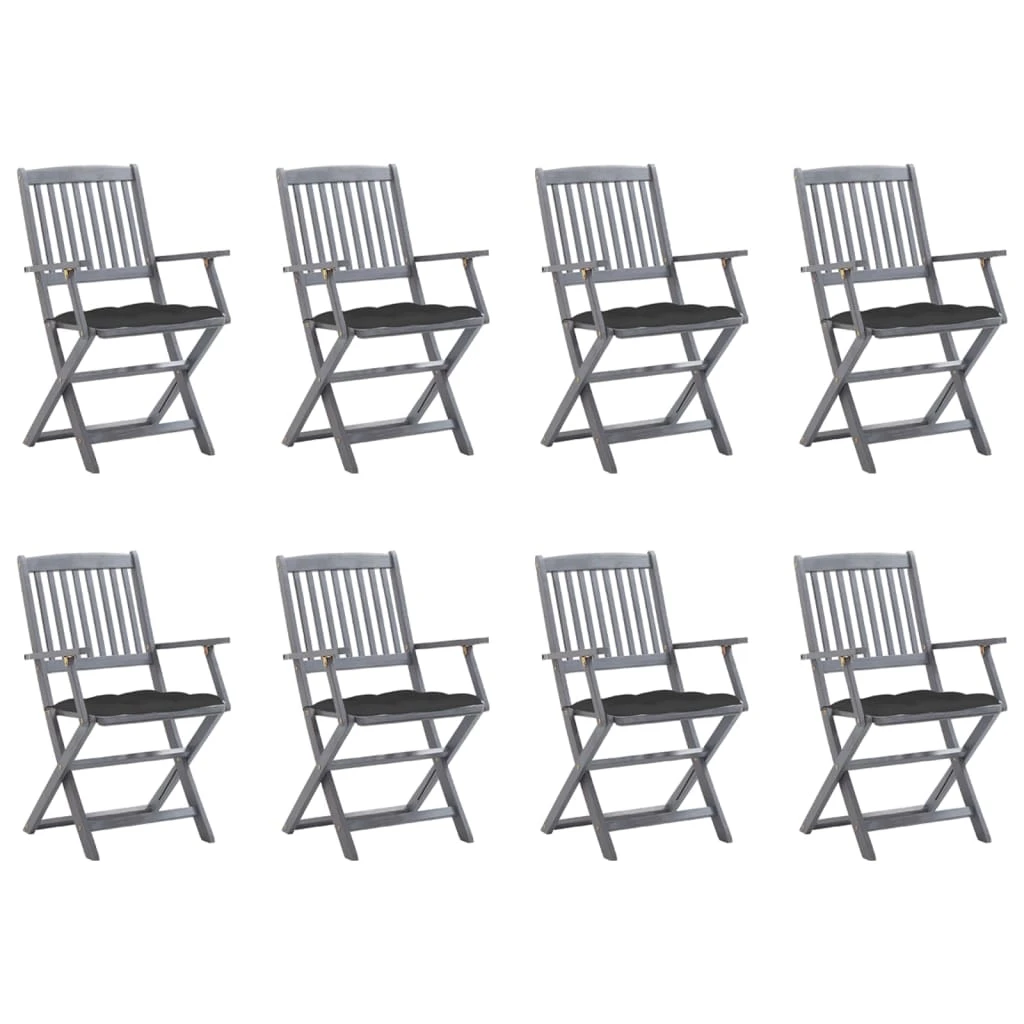 vidaXL Sulankstomos lauko kėdės su pagalvėlėmis, 8vnt., akacija
