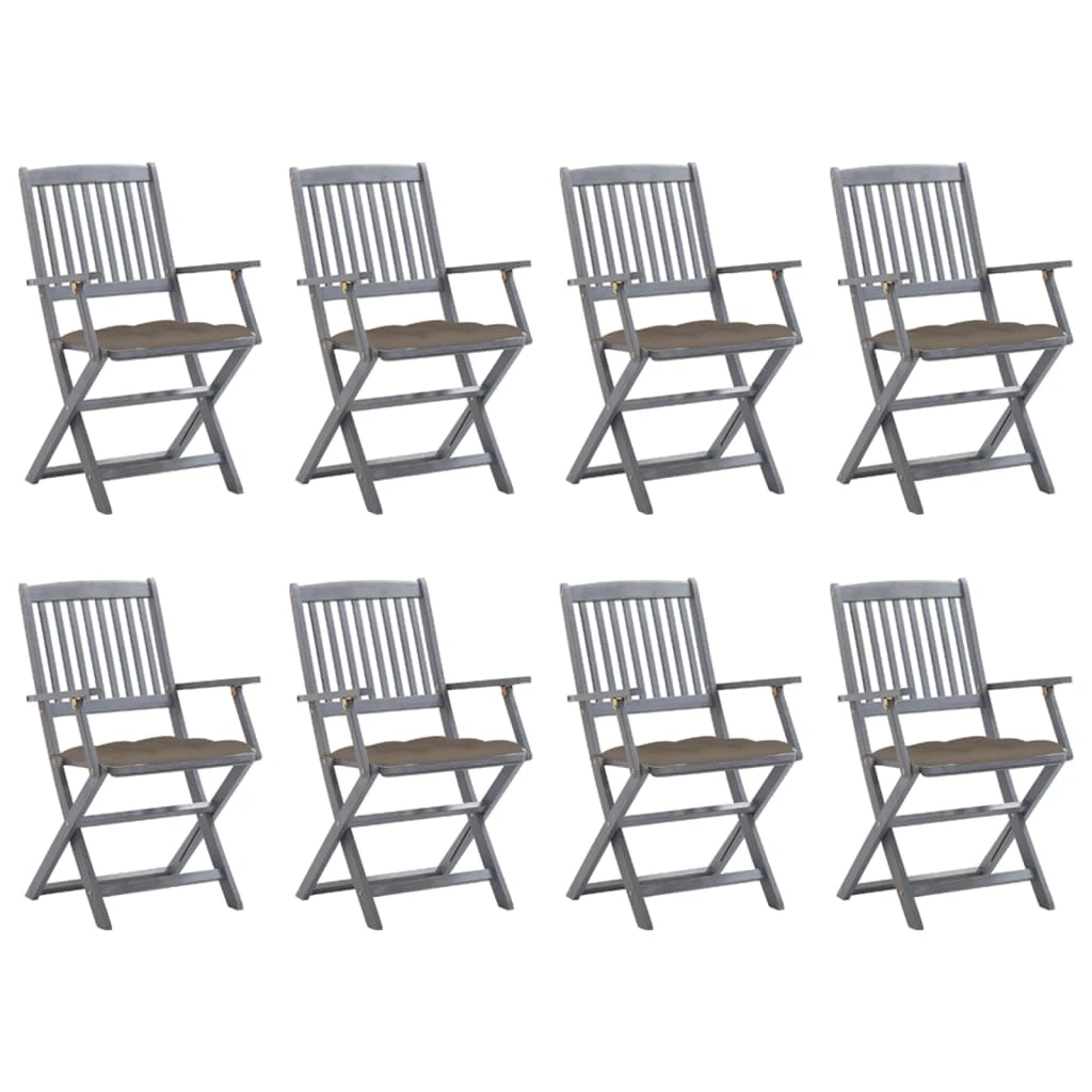 vidaXL Sulankstomos lauko kėdės su pagalvėlėmis, 8vnt., akacija