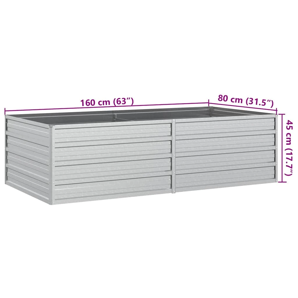 vidaXL Aukštas sodo lovelis, sidabrinis, 160x80x45cm, plienas
