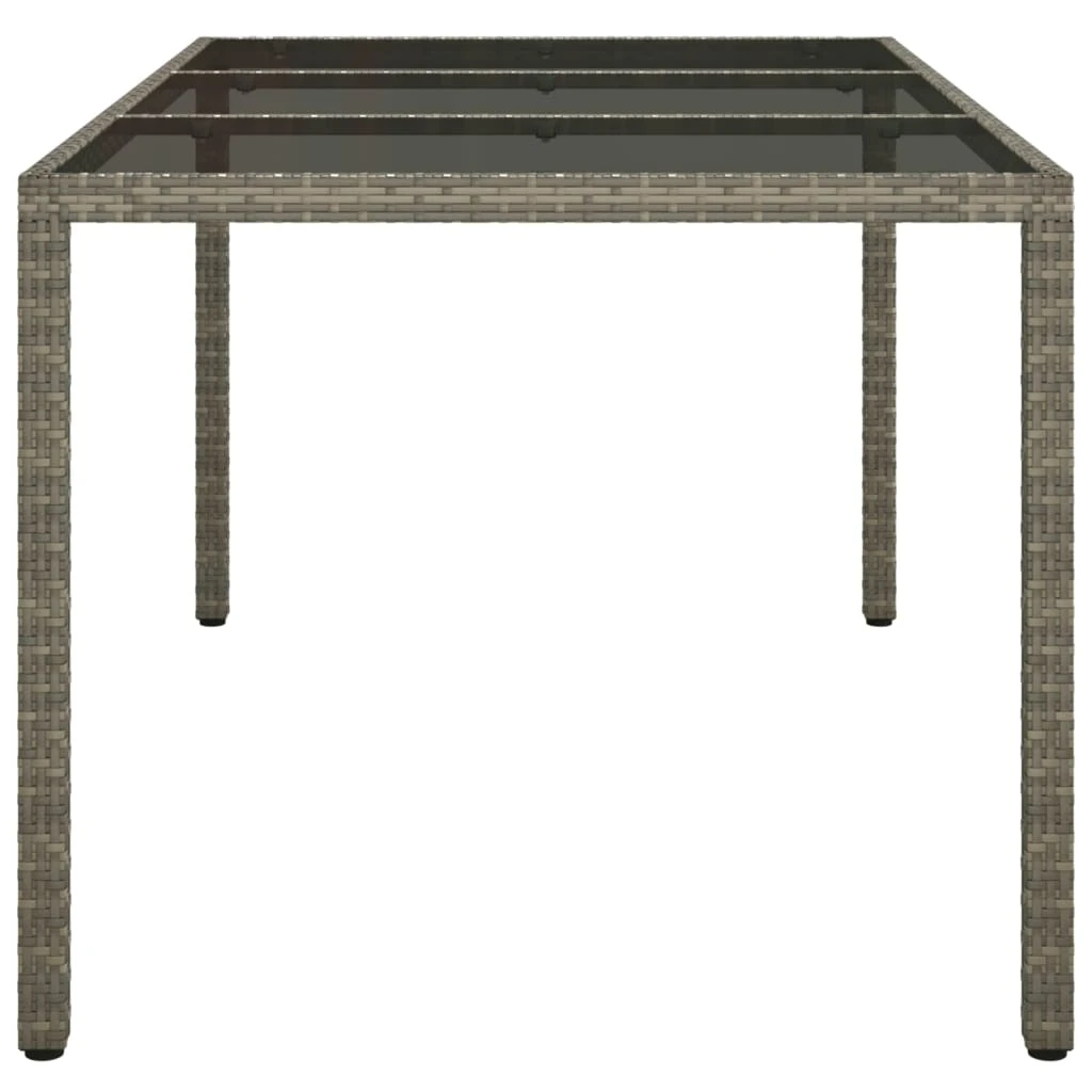 vidaXL Sodo stalas, pilkas, 150x90x75cm, grūdintas stiklas-poliratanas