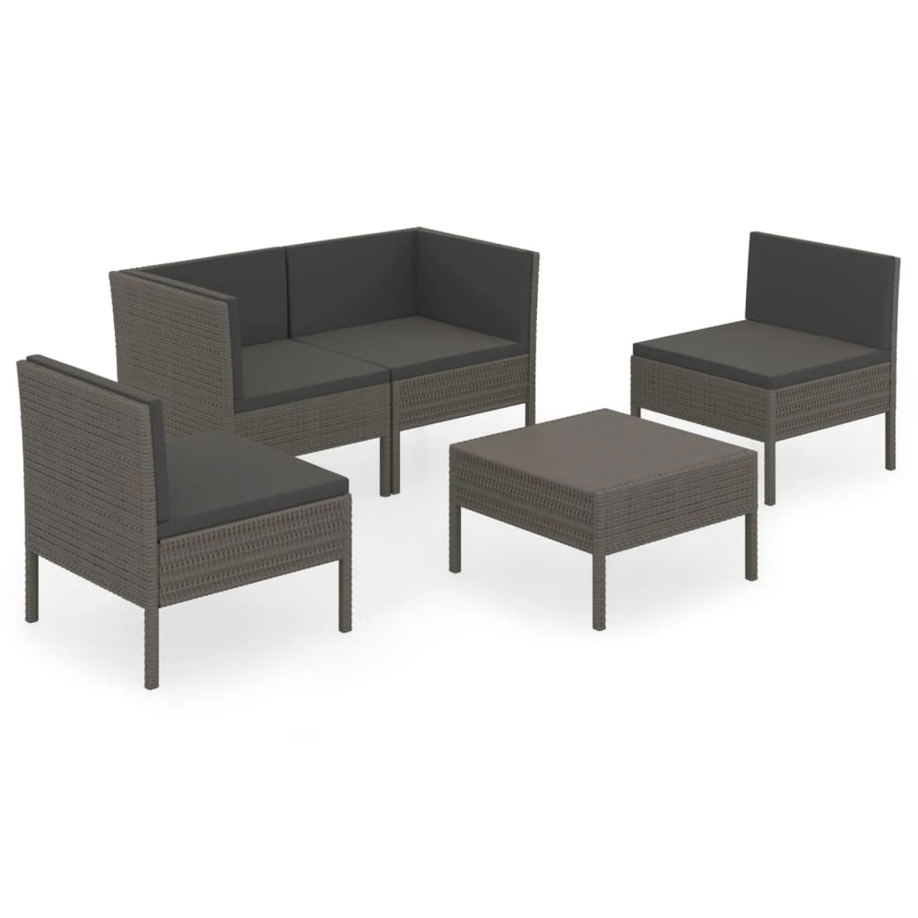 vidaXL Sodo komplektas su pagalvėlėmis, 5 dalių, pilkas, poliratanas