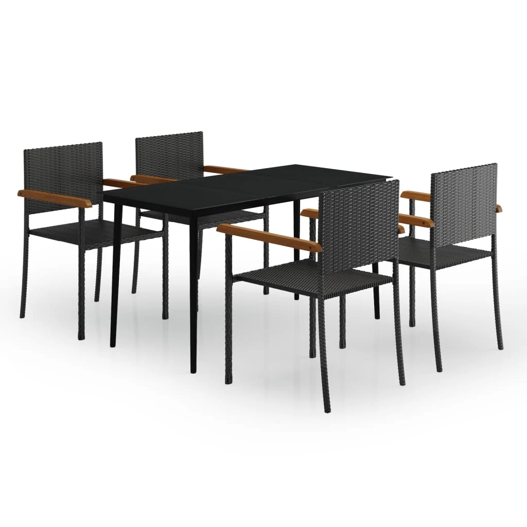vidaXL Sodo valgomojo baldų komplektas, 5 dalių, juodos spalvos