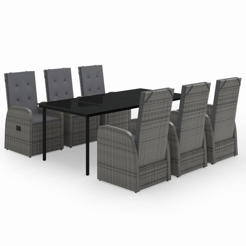 vidaXL Sodo komplektas su pagalvėlėmis, 7 dalių, pilkas, poliratanas
