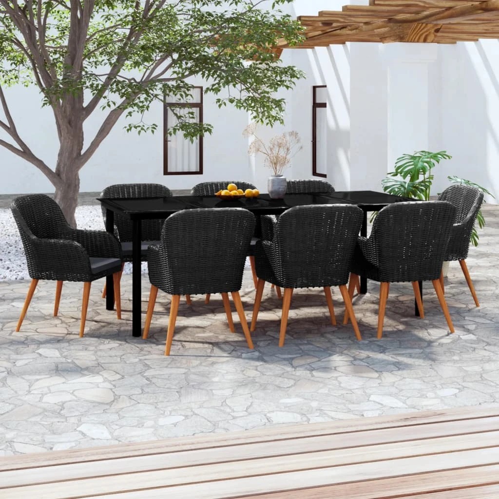 vidaXL Sodo komplektas su pagalvėlėmis, 9 dalių, juodas