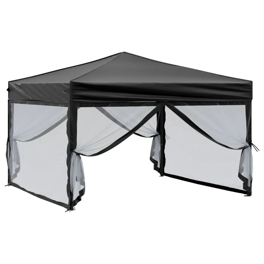 vidaXL Proginė palapinė su šoninėmis sienomis, juoda, 3x3m