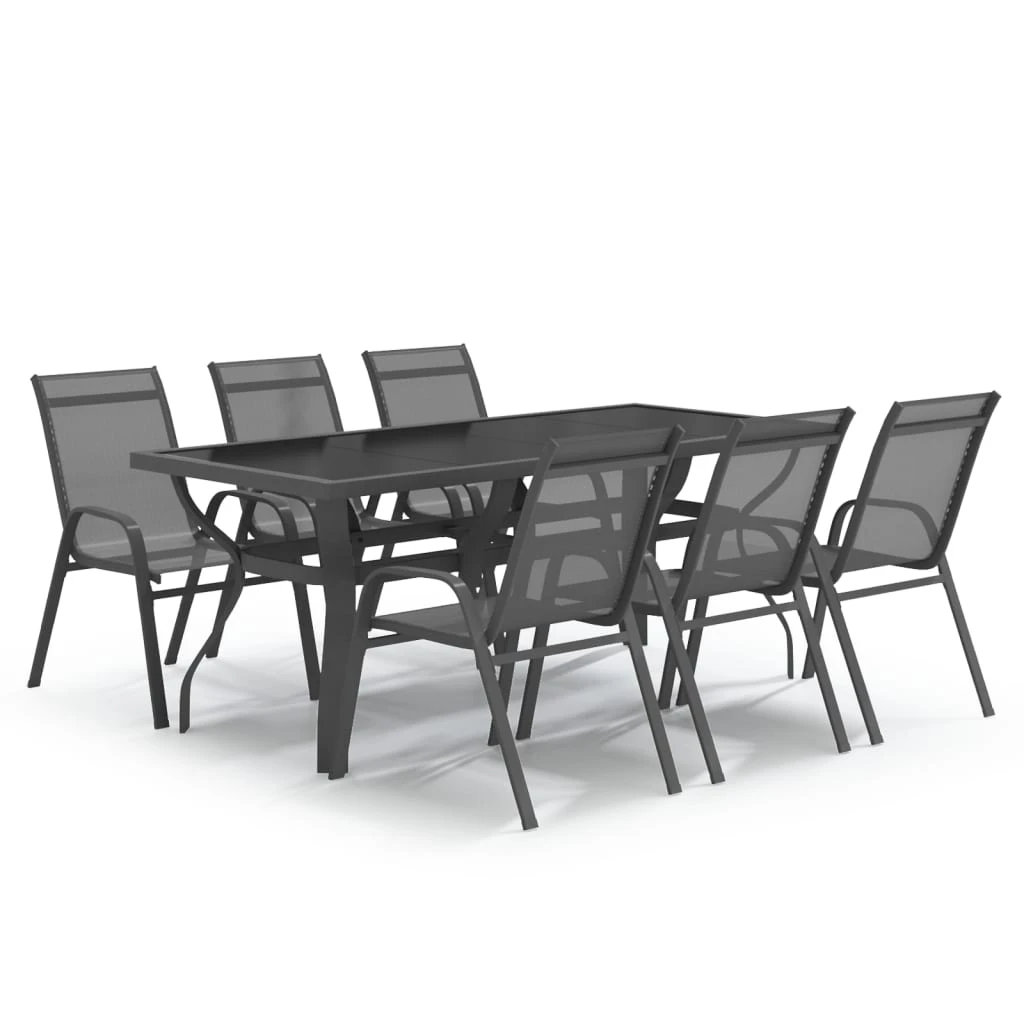 vidaXL Sodo valgomojo baldų komplektas, 7 dalių, pilkas ir juodas