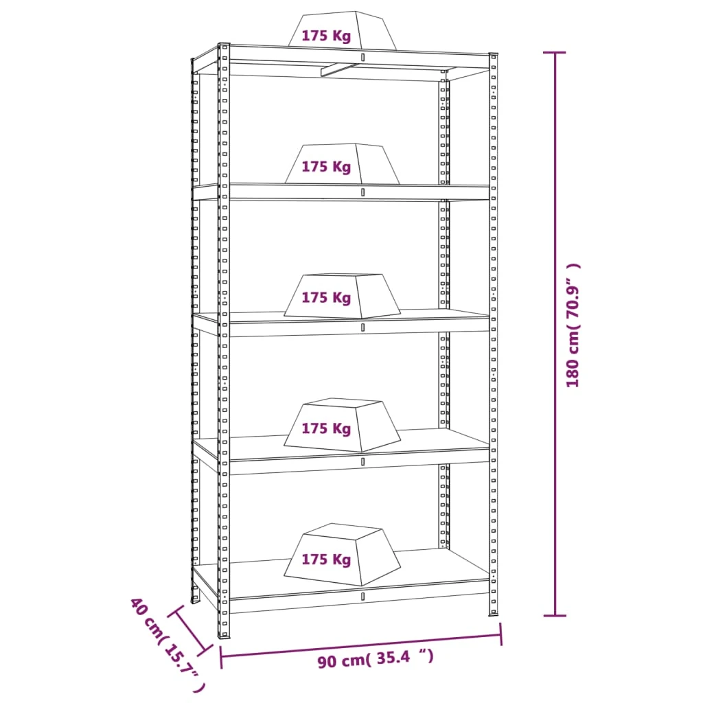 vidaXL 5 sluoksnių tvirtos lentynos, 4 vnt.