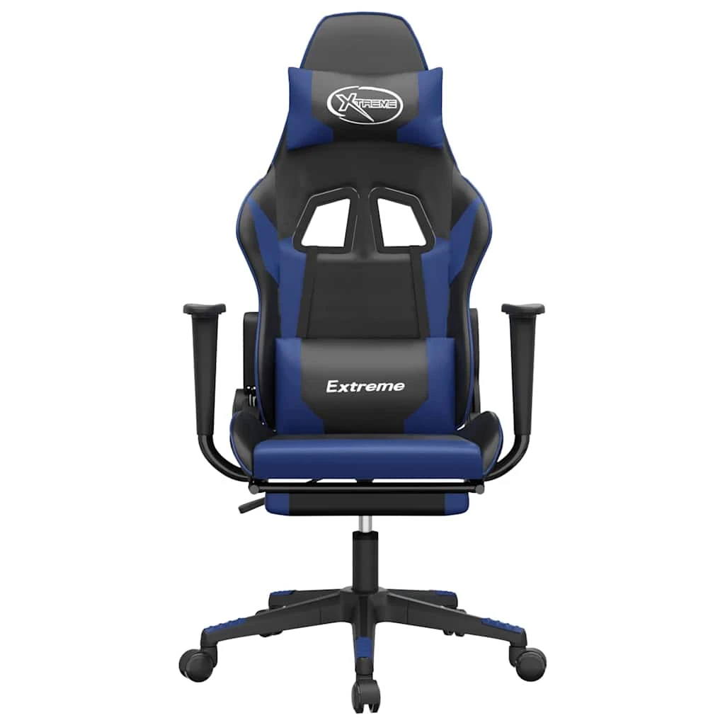 vidaXL Masažinė žaidimų kėdė su pakoja, juoda ir mėlyna, dirbtinė oda