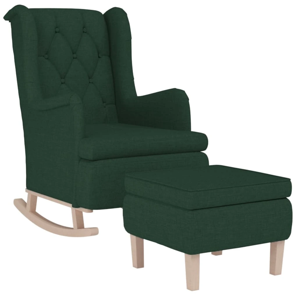 vidaXL Krėslas su lingėmis ir pakoja, tamsiai žalios spalvos, audinys