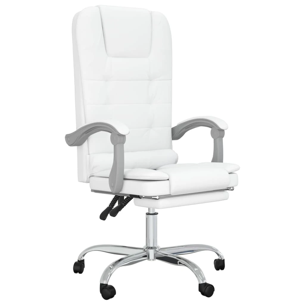 vidaXL Atlošiama masažinė biuro kėdė, baltos spalvos, dirbtinė oda