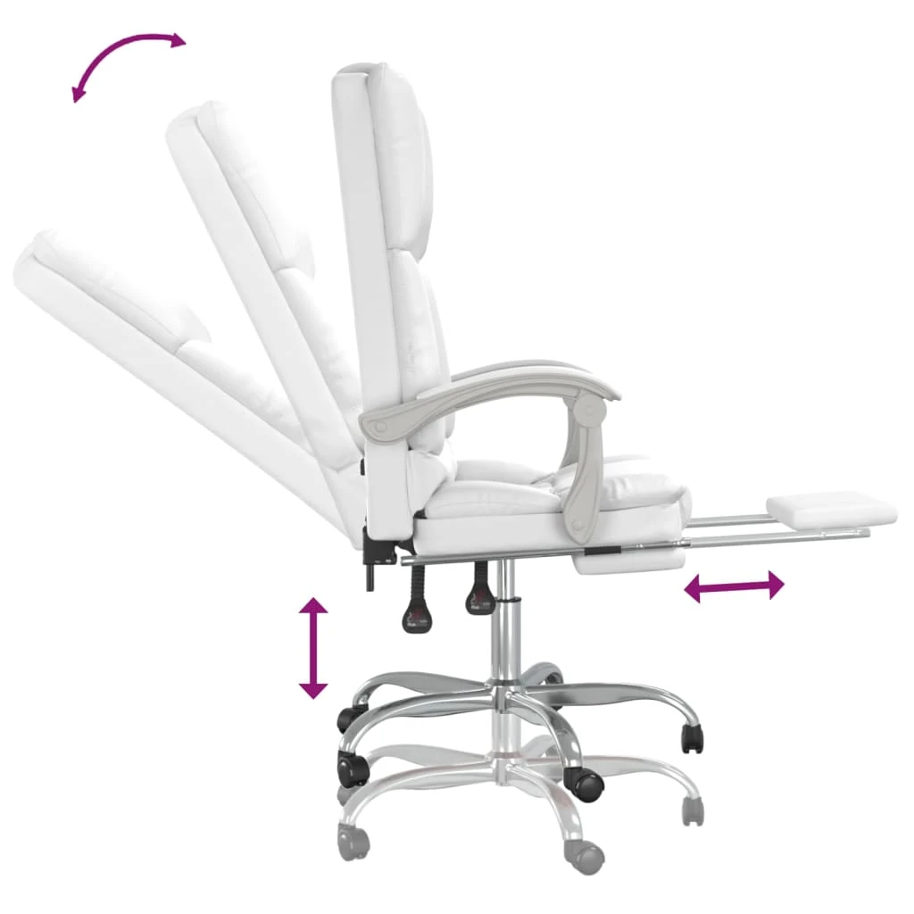 vidaXL Atlošiama masažinė biuro kėdė, baltos spalvos, dirbtinė oda