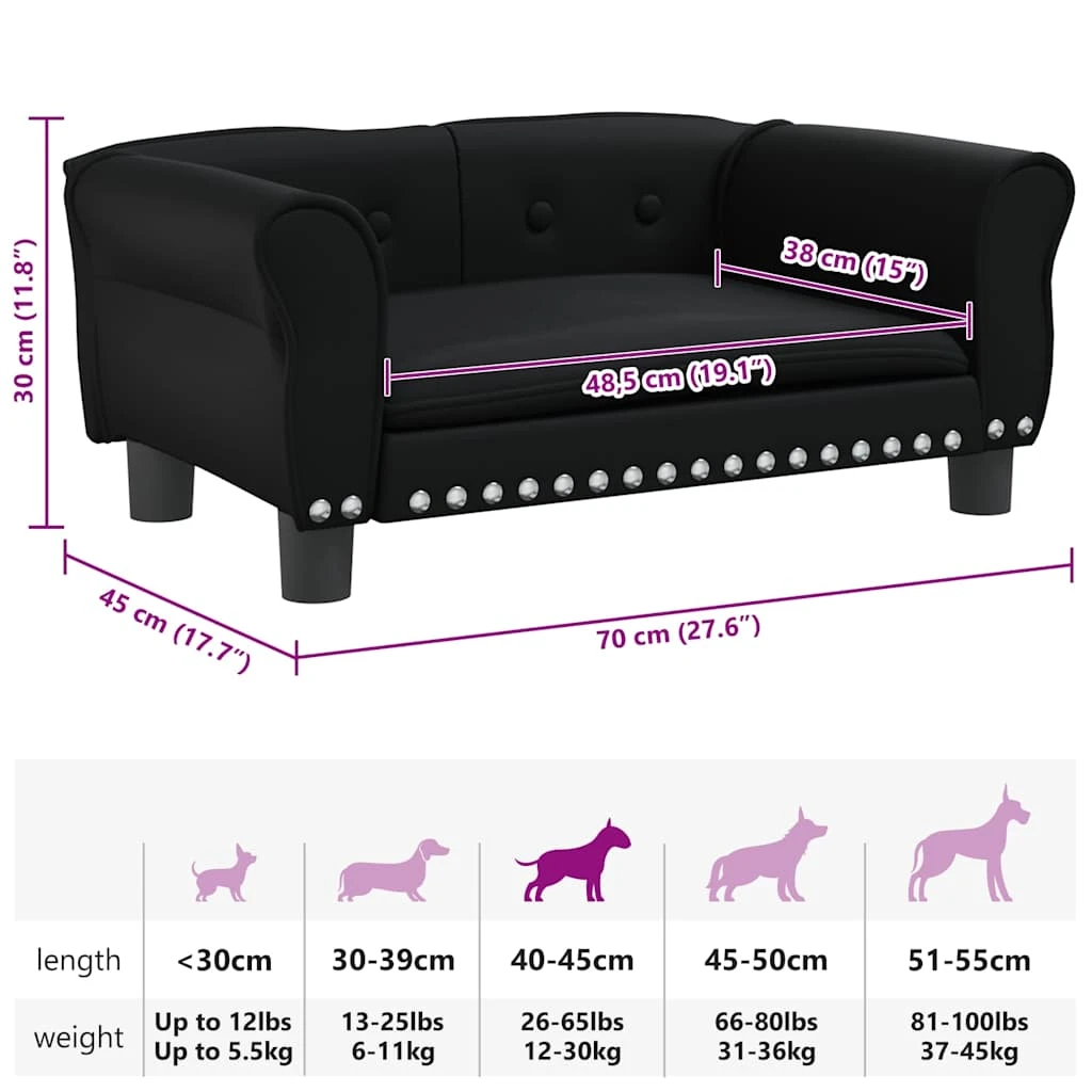 vidaXL Lova šunims, juodos spalvos, 70x45x30cm, dirbtinė oda