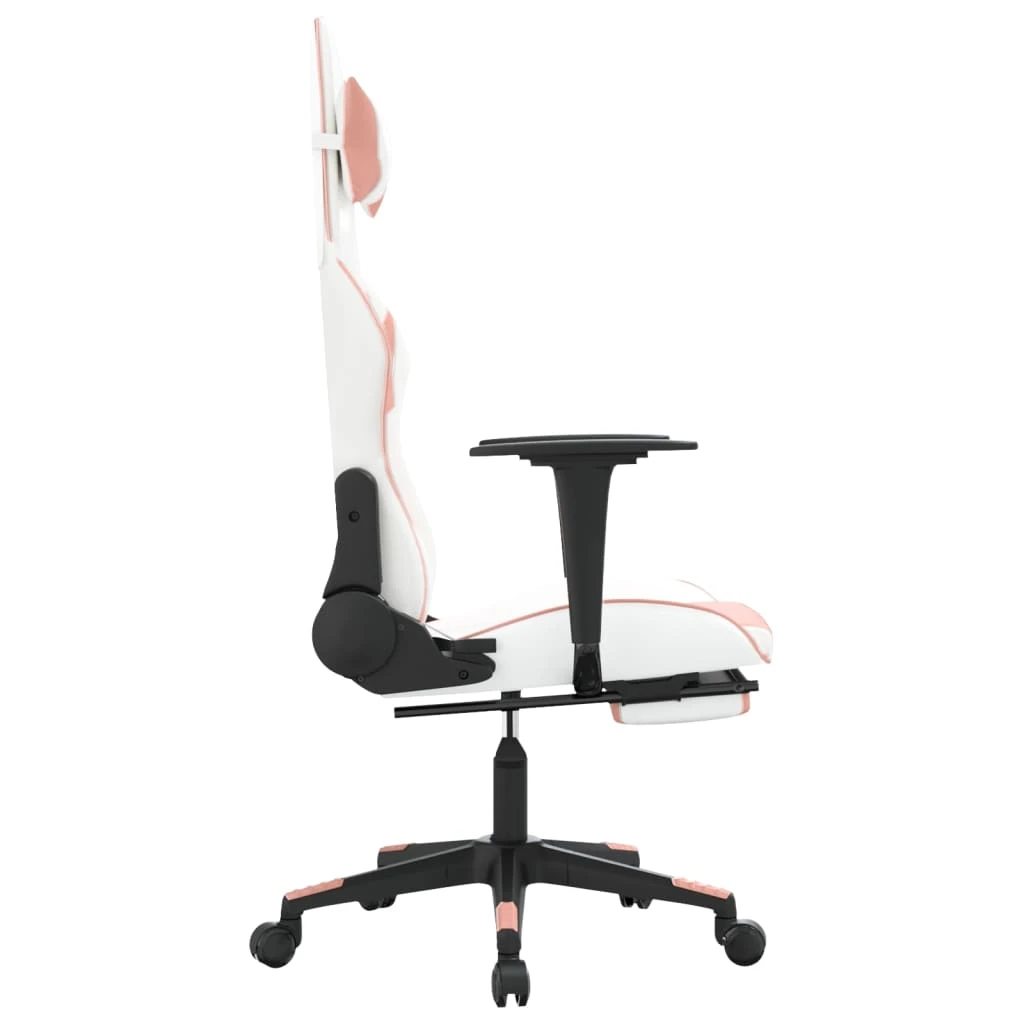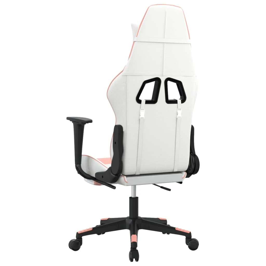 vidaXL Masažinė žaidimų kėdė su pakoja, balta ir rožinė, dirbtinė oda