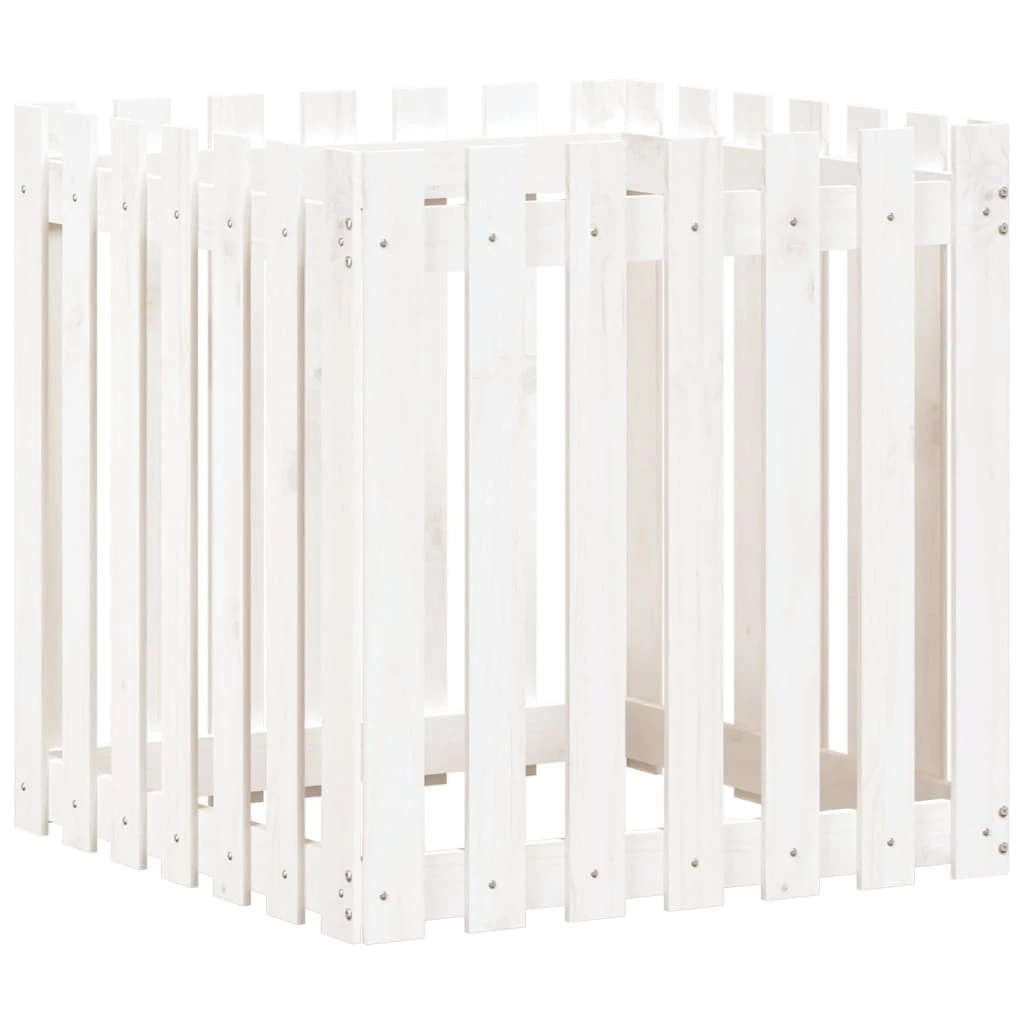 vidaXL Sodo lovelis, baltas, 70x70x70cm, pušis, tvorelės dizaino
