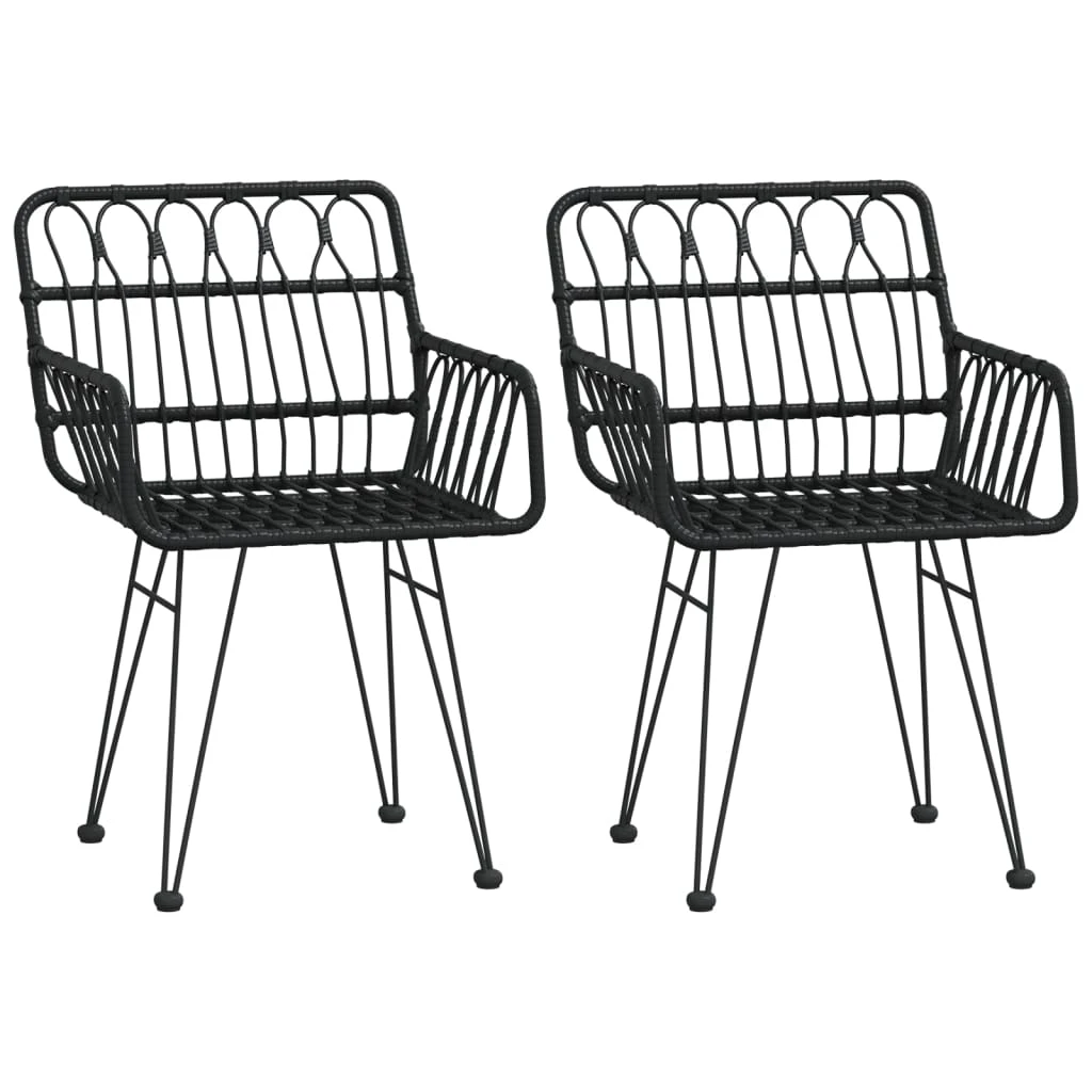 vidaXL Sodo kėdės su porankiais, 2vnt., juodos, 56x64x80cm, PE ratanas