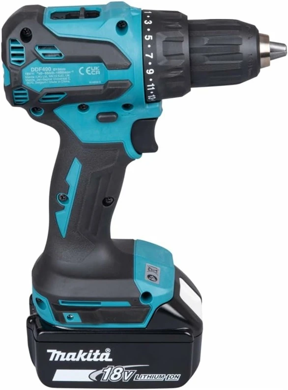 Maksimālais griezes moments, Nm- 65. Apgriezienu skaits tukšgaitā- 0-1900, 0-500. Elektriskā dzinēja tips- Bezsuku. Obligātā garantija- 24 mēn. Āmura režīmi- Nē. Ātrumu skaits- 2. Zīmols- Makita. Artikuls- DDF490Z. Svars- 1.4 kg. Stobra diametrs- 13 mm. Griezes momenta soļu skaits- 20. Maks. urbšanas diametrs kokā- 38 mm. Maks. urbšanas diametrs tēraudā- 13 mm. Akumulators iekļauts komplektā- Nē. Akumulatora tips- Li-ion. Akumulatoru skaits komplektā- 0. Akumulatora spriegums- 18 - 18V. Lādētājs iekļauts- Nē. Soma komplektā- Nē. Uzgaļu komplekts iekļauts- Nē. Iebūvēts LED apgaismojums- Jā.