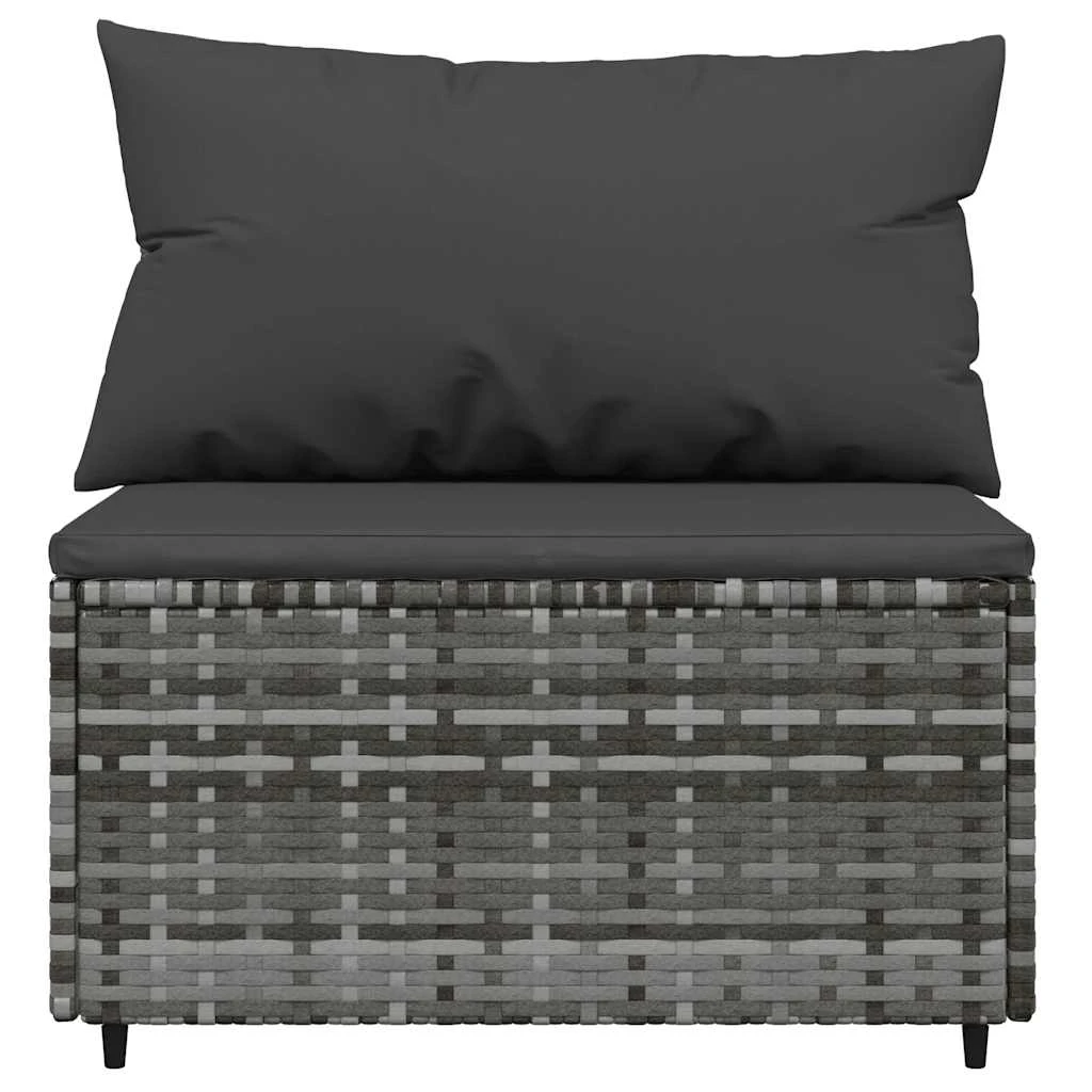 vidaXL Vidurinė sodo sofos dalis su pagalvėmis, pilka, poliratanas