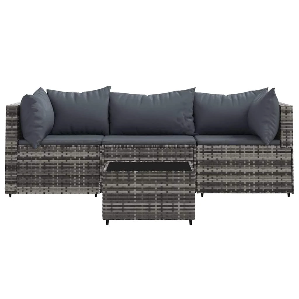 vidaXL Sodo komplektas su pagalvėlėmis, 4 dalių, pilkas, poliratanas