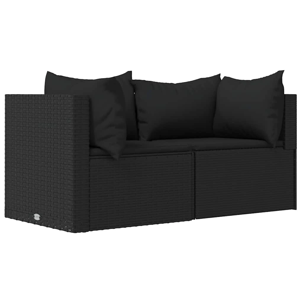 vidaXL Sodo komplektas su pagalvėlėmis, 3 dalių, juodas, poliratanas