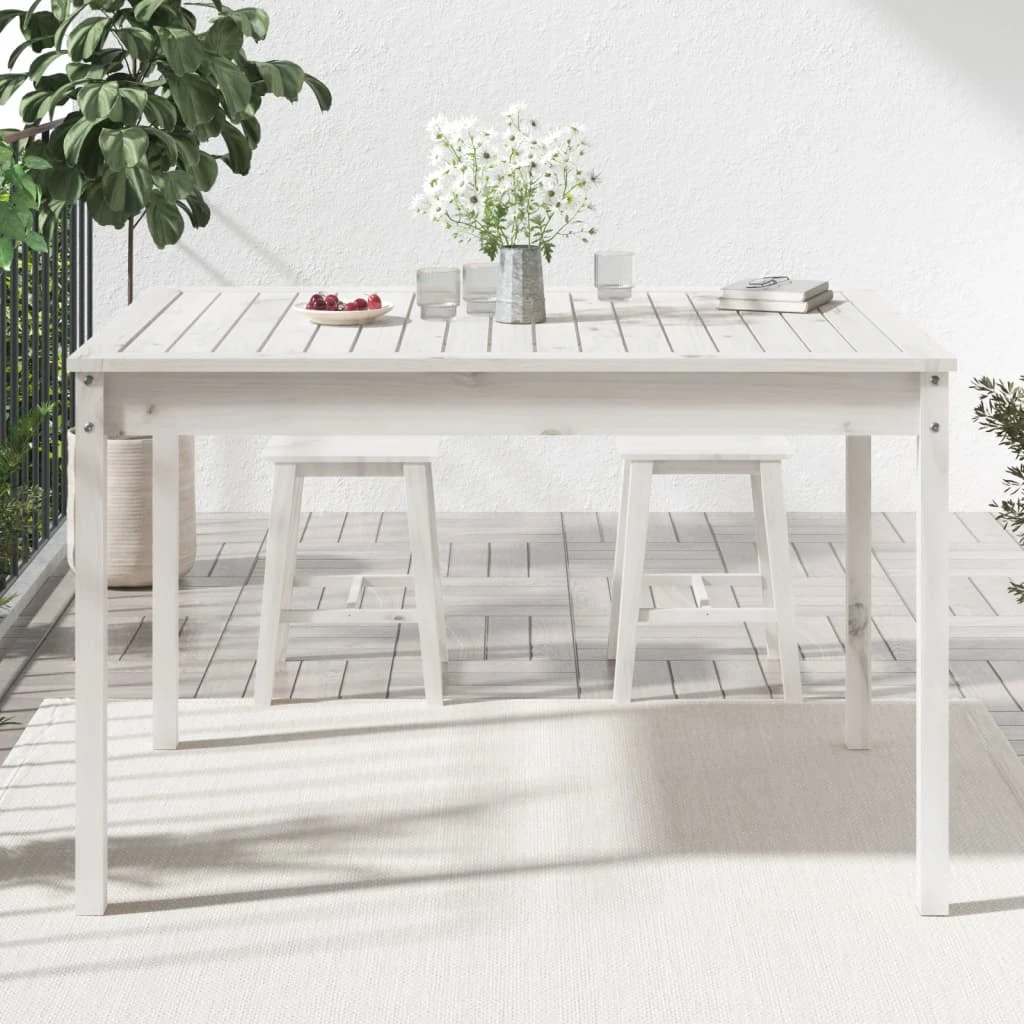 vidaXL Sodo stalas, baltas, 121x82,5x76cm, pušies medienos masyvas
