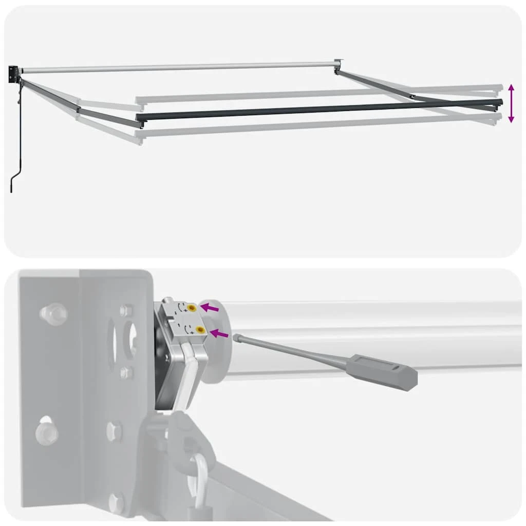- Lengvas valdymas: sodo markizę galėsite lengvai ištraukti ir įtraukti pridėto nuotolinio valdymo pultelio pagalba. Be to, kai nėra elektros, lauko skliautas gali būti paprastai valdomas ilgo rankinio švaistiklio pagalba. Šią ištraukiamą markizę lengva surinkti.