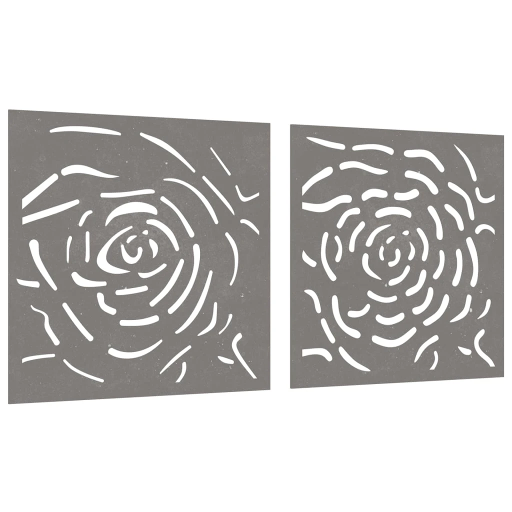 vidaXL Sodo sienos dekoracija, 2 dalių, 55x55cm, corten plienas, rožė