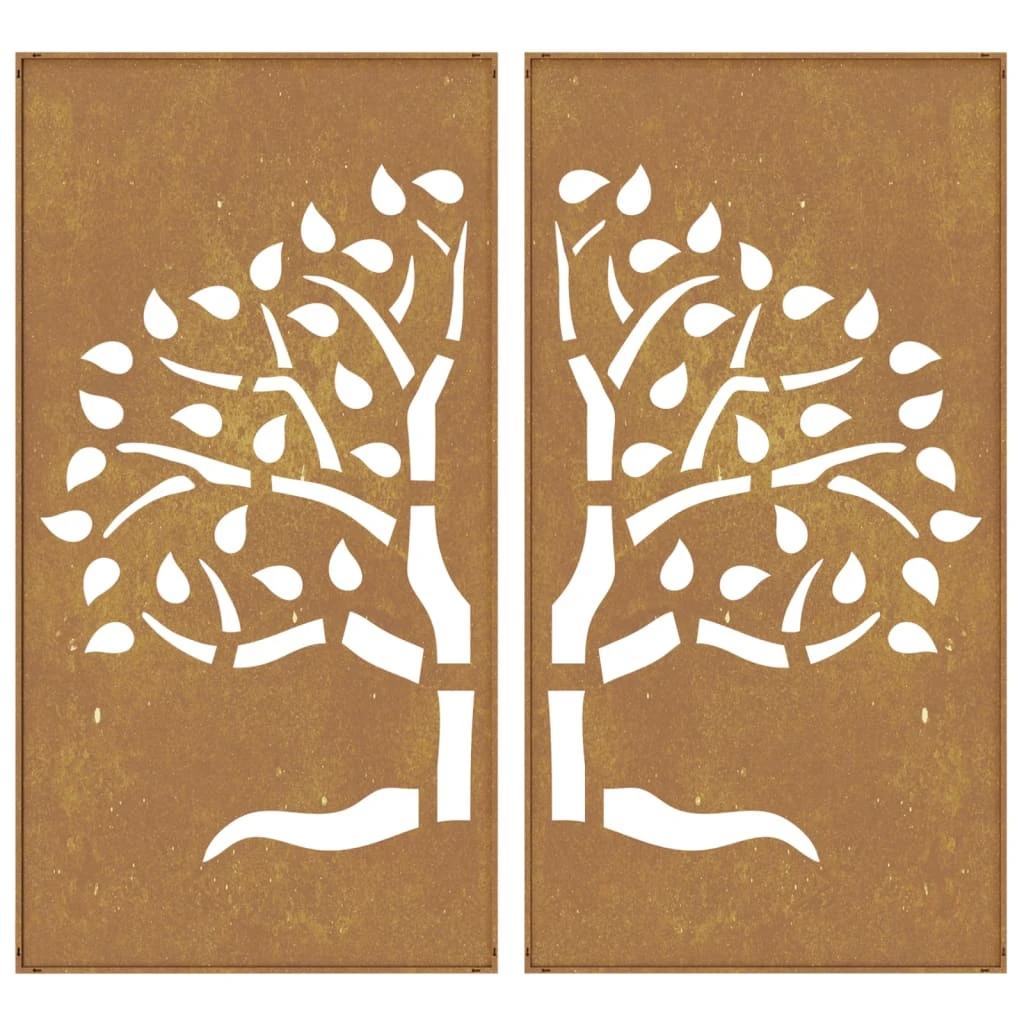 vidaXL Sodo sienos dekoracija, 2 dalių, 105x55cm, corten plienas