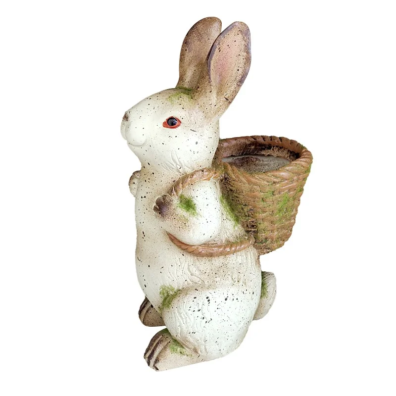 Sodo dekoro sėdimas zuikis su krepšeliu 50cm