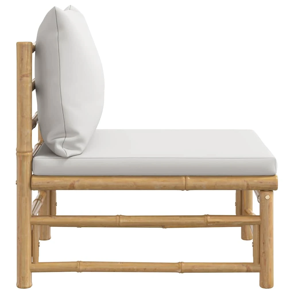 vidaXL dārza vidējais dīvāns ar gaiši pelēkiem matračiem, bambuss